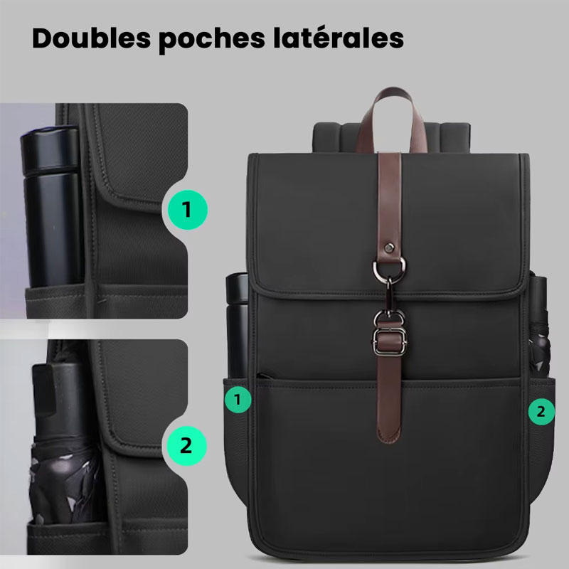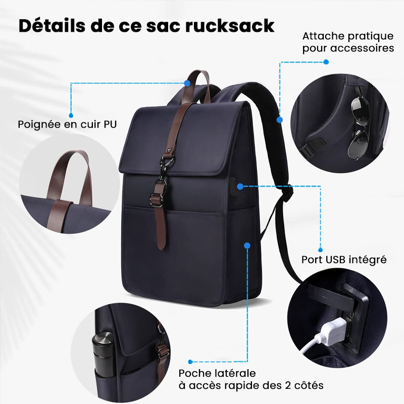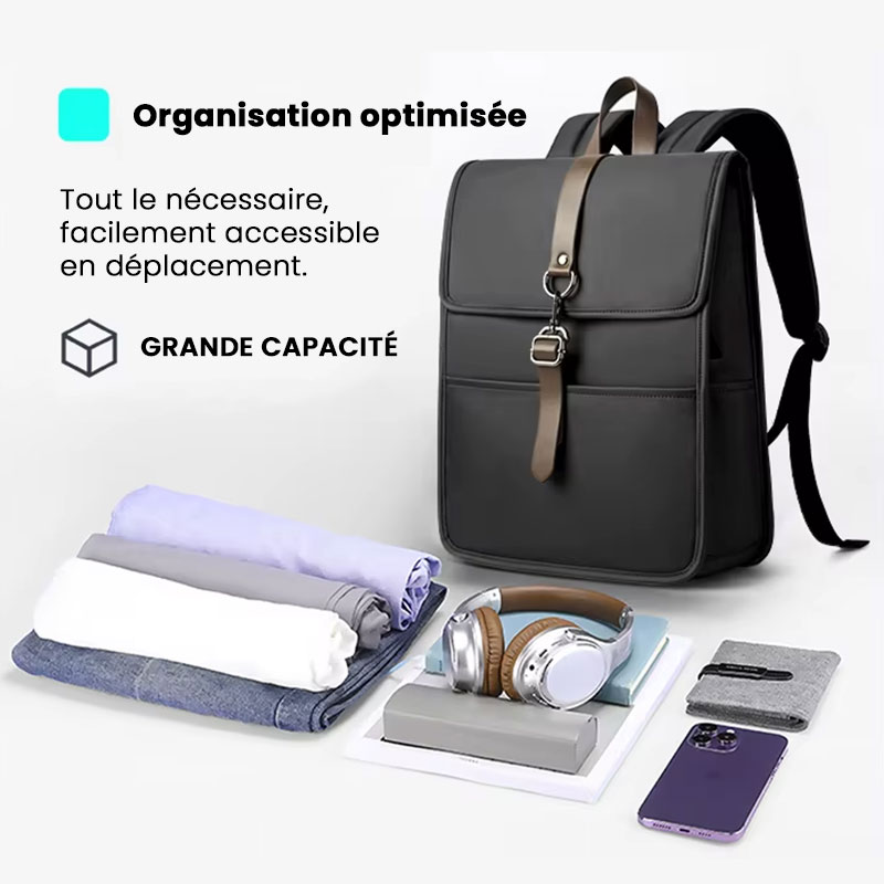 Sac rucksack urbain unisexe imperméable – Design épuré & Port USB, modèle Edificio